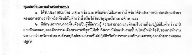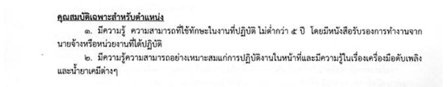 คุณสมบัติ : มีความเหมาะสมในการปฏิบัติงานในหน้าที่