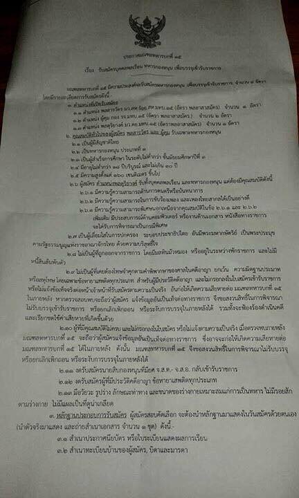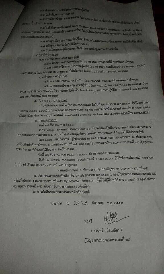 เชิญผู้ที่สนใจสมัครด่วนได้ที่ มณฑลทหารบกที่ 15 ค่ายรามราชนิเวศน์ (วังบ้านปืน) จังหวัดเพชรบุรี