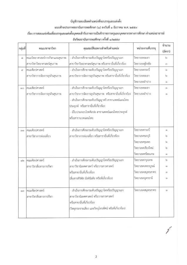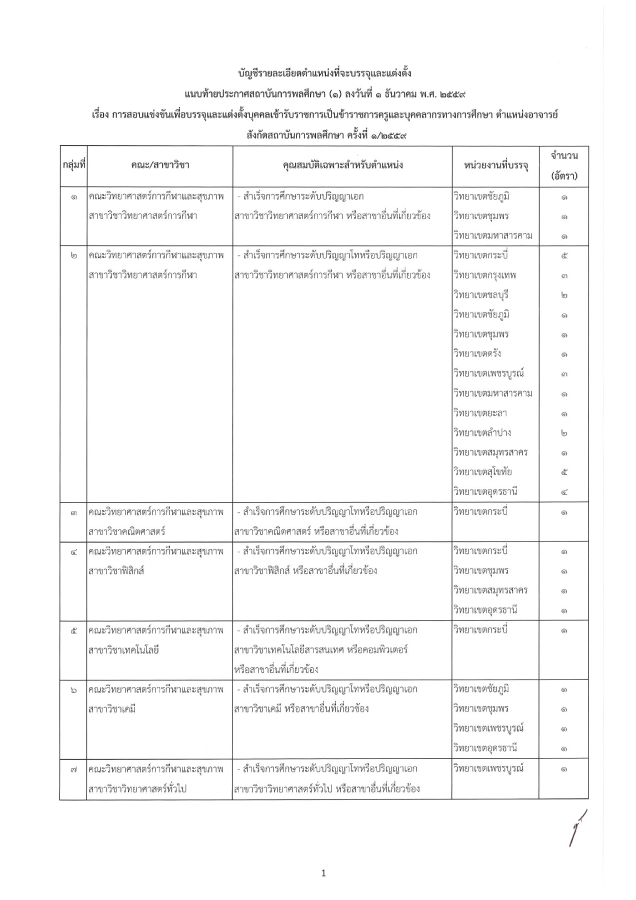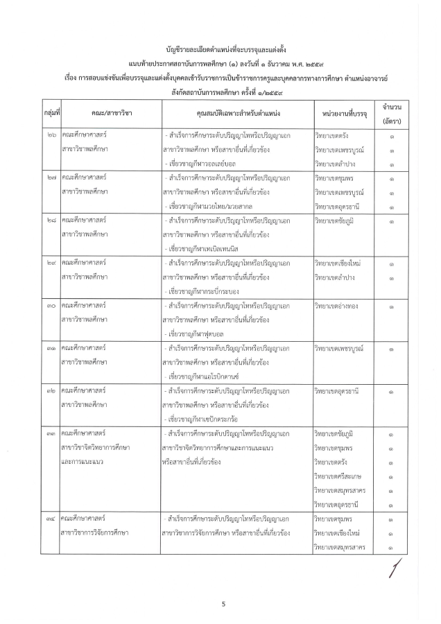 สถาบันการพลศึกษา รับสมัครสอบแข่งขันและแต่งตั้งบุคคลเข้ารับราชการเป็นข้าราชการครูและบุคลากรทางการศึกษา ตำแหน่งอาจารย์ สังกัดสถาบันการพลศึกษา ครั้งที่ 1/2559 จำนวน 166 อัตรา คุณวุฒิ ป.โท (เงินเดือน 17,500 บาท) และป.เอก (เงินเดือน 21,000 บาท)