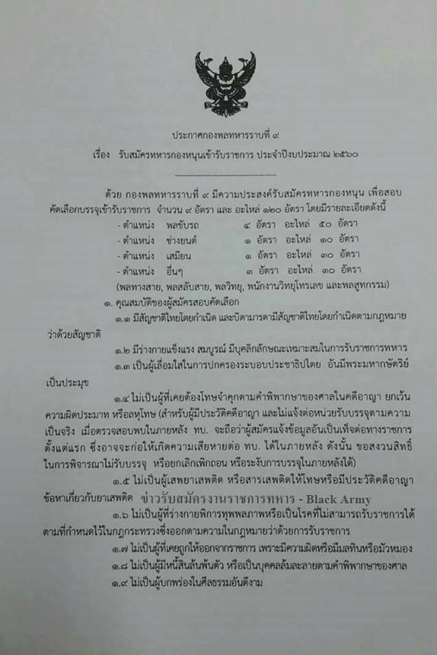 ขอบคุณข่าวสารจาก เพจข่าวรับสมัครงานราชการทหาร – Black Army
