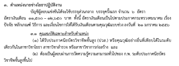 3. นายช่างโยธาปฏิบัติงาน 6 อัตรา