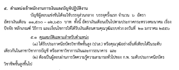 5. เจ้าพนักงานการเงินและบัญชีปฏิบัติงาน 6 อัตรา
