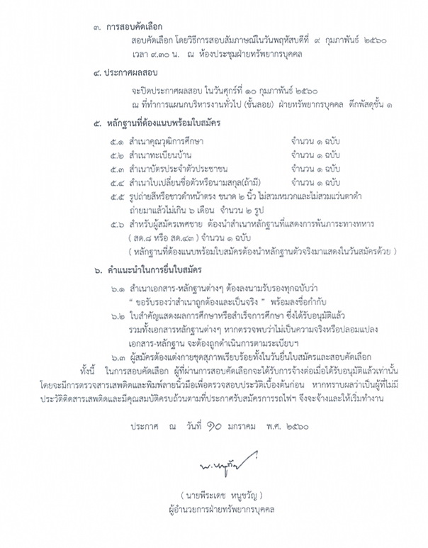 ฝ่ายทรัพยากรบุคคล รับสมัครบุคคลเข้าทำงานเป็นลูกจ้างเฉพาะงาน ตำแหน่งพนักงานบริหารงานทั่วไป (เสมียน) 1 อัตรา อัตราค่าจ้างวันละ 300 บาท คุณวุฒิ ปวช. เปิดรับสมัคร 23 ม.ค.-3 ก.พ.60