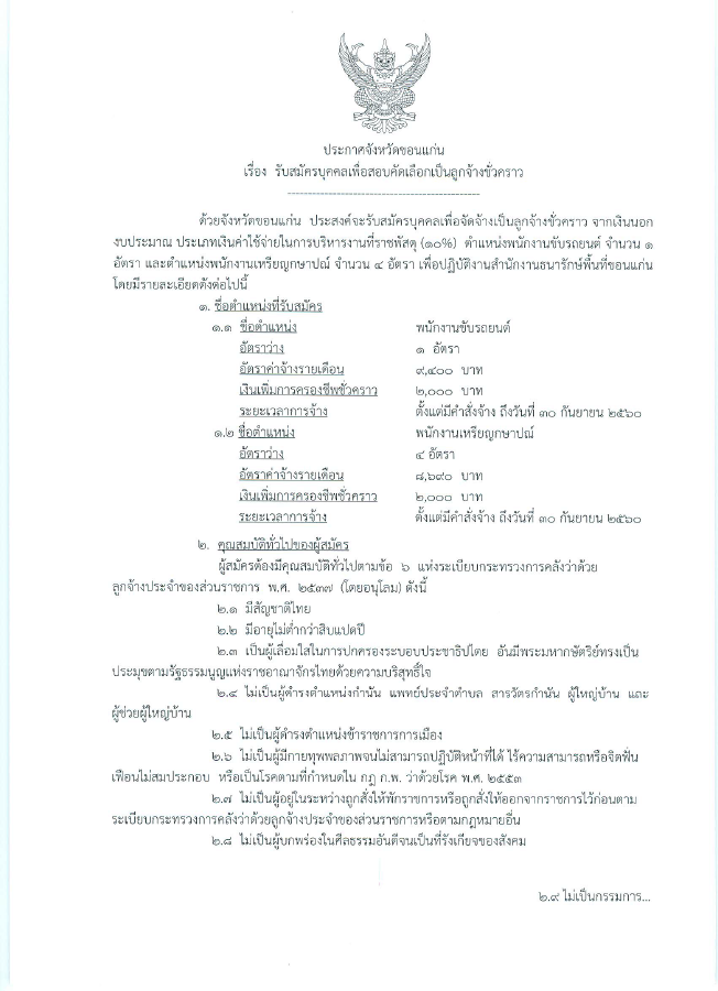 สำนักงานธนารักษ์พื้นที่ขอนแก่น รับสมัครบุคคลเพื่อสอบคัดเลือกเป็นลูกจ้างชั่วคราว 5 อัตรา รับสมัคร 18-25 ม.ค.60